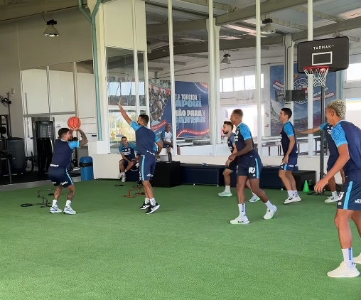 Em um trecho da atividade, publicado nas redes sociais, após algumas tentativas de acertar a cesta, David Duarte fez um passe para Cauly, que arremessou com precisão para pontuar para seu time.