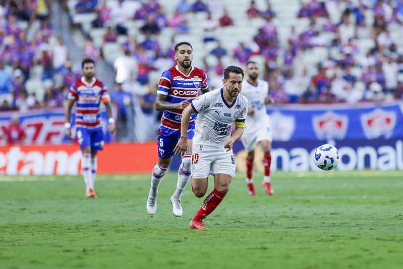 Apesar de maior posse de bola (61%) na etapa inicial, o Bahia teve dificuldades na criação ofensiva e viu o Fortaleza ser mais incisivo nas ações de ataque. Jogando com intensidade e apostando nas jogadas pelas laterais, especialmente com Marinho pelo lado direito, o time cearense levou perigo desde os primeiros minutos.