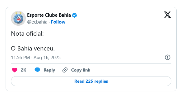 A resposta tricolor veio em tom bem-humorado. O perfil oficial publicou uma espécie de “nota oficial alternativa”, em alusão ao posicionamento anterior do Corinthians, fazendo referência direta à palavra “oportunismo”.