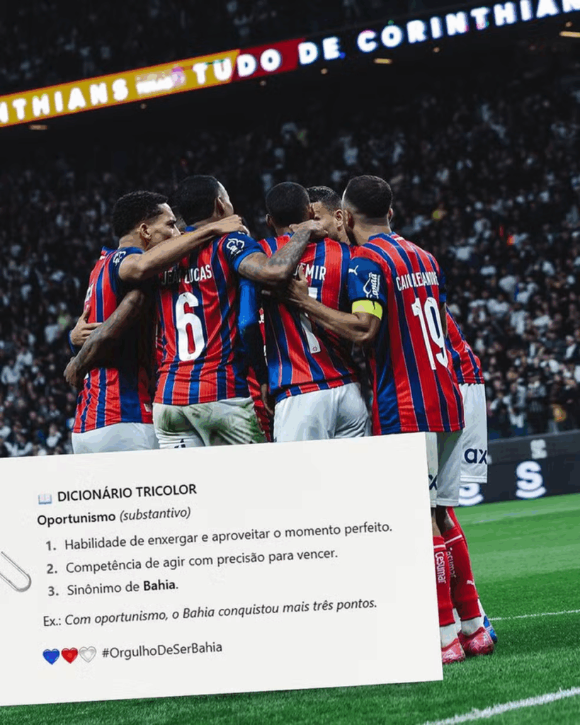 O Bahia voltou a provocar o Corinthians, desta vez depois do triunfo por 2 a 1, na Neo Química Arena, pela 20ª rodada do Brasileirão. Nas redes sociais, o Tricolor fez uma publicação com tom de ironia sobre a recente polêmica envolvendo a contratação do jovem Kauê Furquim, tratado como promessa do clube paulista.