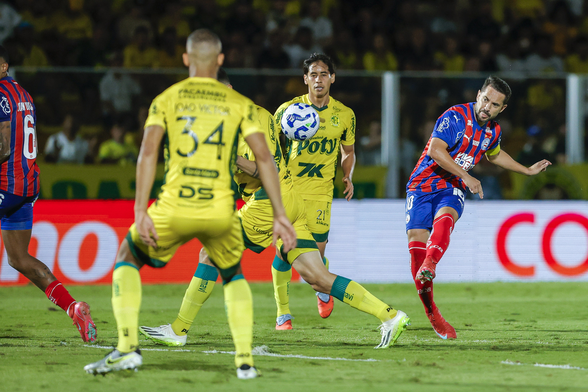 No primeiro tempo, João Victor abriu o placar logo aos dois minutos, após cobrança de escanteio. Pouco depois, Chico da Costa ampliou com um belo gol de voleio e Lucas Ramon fez o terceiro aproveitando rebote dentro da área. O Bahia até tentou responder em algumas chegadas com Everton Ribeiro e Kayky, mas parou nas defesas de Walter.